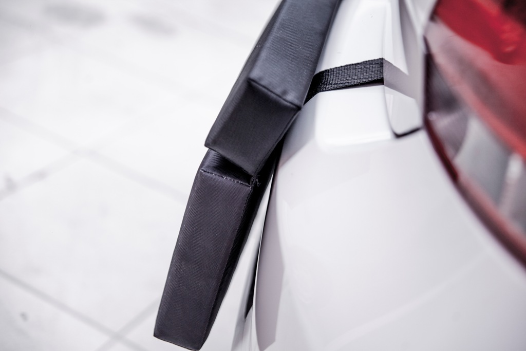 Customer experience is top-of-mind here at Proteporta and we have created a product that is extremely easy to use. Bumper Guard is connect to two long and customizable straps with velcro attached to the footer, that easily "grips" to the inner carpet of the trunk. We've added a rubber lock at the end of the straps to ensure the bumper guard never disconnects from the trunk.